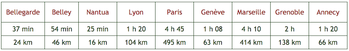 Temps et km séparant les grandes villes de la ferme du Chenet